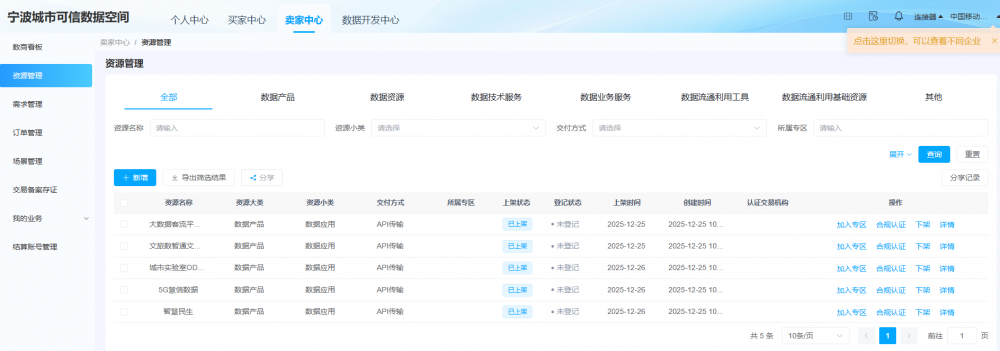 基础设施建设是前提,运营赋能方为关键。宁波移动依托自身市场触角广、行业理解深的优势,在城市可信数据空间率先打造了运营商体系内首个“移动专区”。该专区将运营商特有的高价值数据资源,经严格脱敏脱密处理后融入城市数据要素流通体系,为社会提供精准、高效、多元的数据支撑与服务。