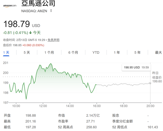 周五,亚马逊股价下跌0.41%,报198.79美元,为连续第9日下跌,创下2006年7月以来最长的连跌纪录。在此期间股价累计大跌18.2%。