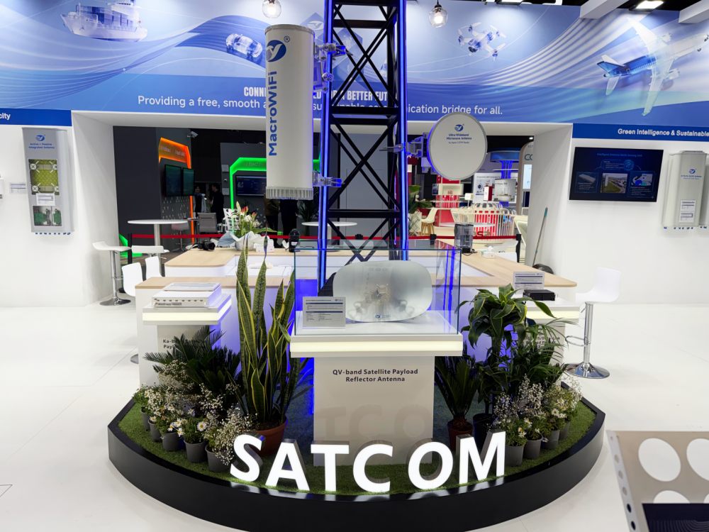 作为本次展示的压轴板块,通宇通讯系统呈现了其作为“空天地一体化”关键引领者的技术实力。超宽带三频微波天线通过高度集成,解决了地面回传的容量与空间矛盾。在星载领域,Ka频段星载相控阵天线被誉为太空互联网的“核心引擎”,而 QV频段反射面天线及伺服系统则代表了面向未来更高频段卫星通信的尖端技术。结合面向物联网的C波段卫星IoT终端及广域覆盖的MacroWiFi解决方案,通宇通讯正构建一个从地面蜂窝网到低空、再到太空卫星网络的完整、高效、协同的全域连接体系。