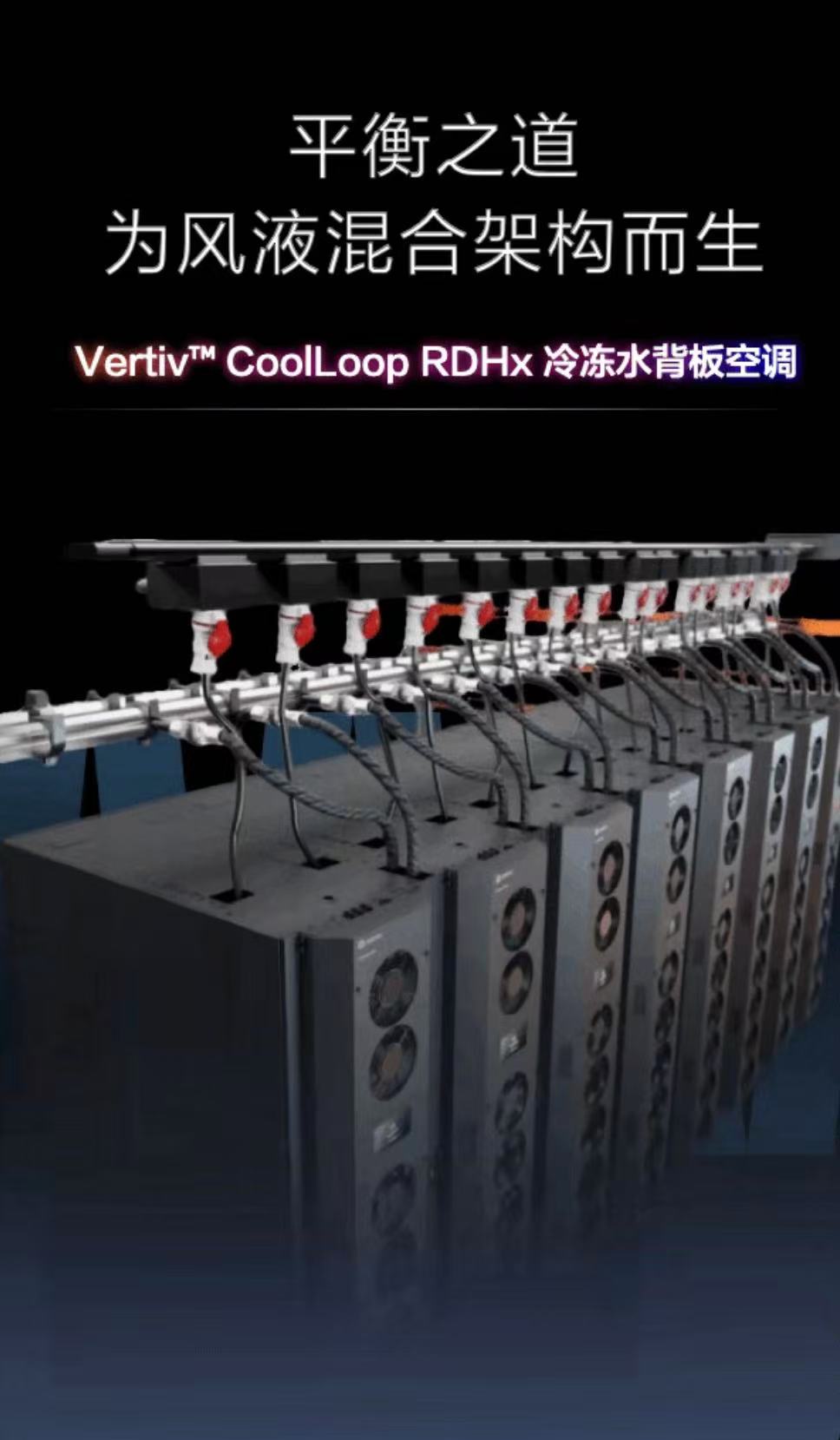 “伴随 AI 服务器向液冷技术的加速演进,如何高效处理空气侧的‘残余热负荷’成为关键挑战。Vertiv™ CoolLoop RDHx 冷冻水背板空调采用紧凑的零占地设计,与液冷系统实现无缝‘风液协同’,为高密度算力环境提供高效、极简且具备卓越扩展性的热管理方案。”