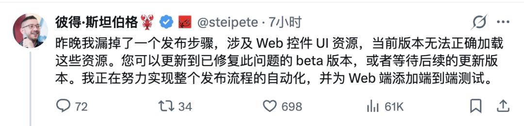 此外,昨晚3.22版本因为暴力拆除旧API,导致微信等IM插件大面积“罢工”。