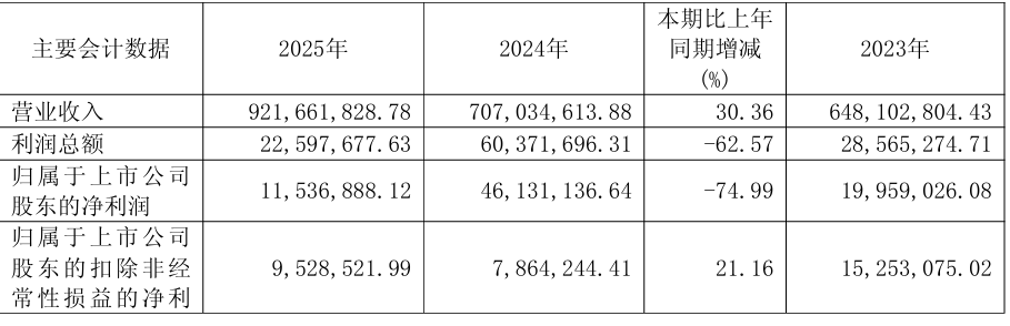 2.德宏股份2025年实现营收9.22亿元,净利润同比下降74.99%