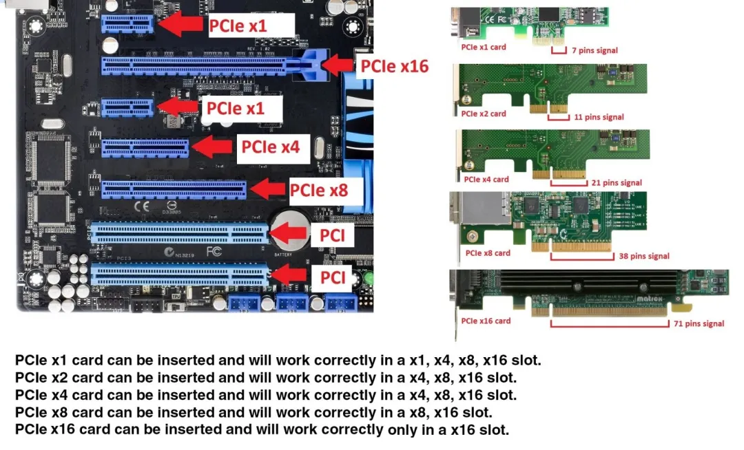 除了吞吐量不同,不同的PCIe的尺寸的应用有啥不同呢?我们就来详细看下X1、X4、X8、X16的应用情况。