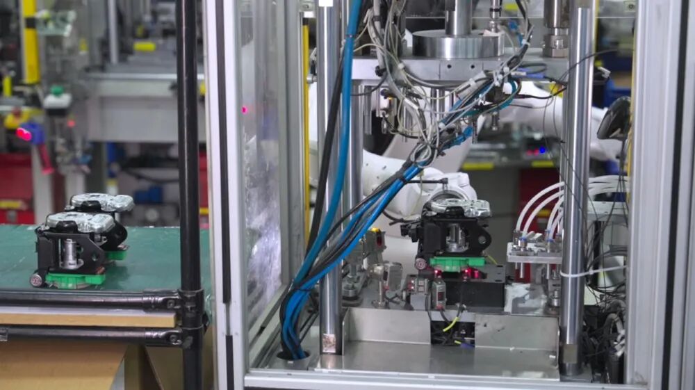 智元精灵G2将汽车安全带锁芯送人压紧机(企业供图)