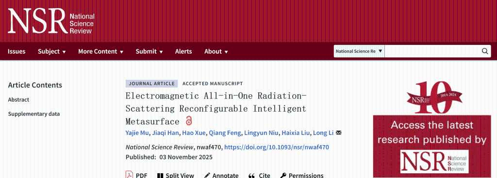 该成果提出了电磁多维融合幅散可重构智能超表面,构建了简并集成的辐射-散射一体化超表面调控理论和统一物理平台,涵盖了电磁波相位、极化、幅度、波形、频率和时间等多维特性,可实现幅散可重构智能超表面信息和能量按需设计。