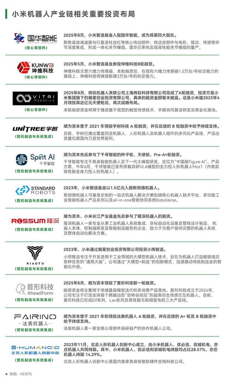 除了自研体系的不断强化,小米在具身智能领域的投资动作同样值得关注。