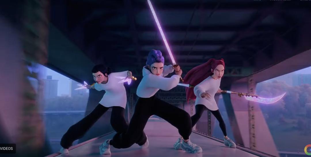 如果你还没看过这部电影,片子的内容如下:表面上,主角是光鲜亮丽的三位kpop女团偶像,实际上,她们的身份是恶魔猎人!她们靠唱歌封印恶魔,而邪恶的恶魔派出了一个天才般的——kpop男团!来和她们抢粉丝!!总之电影是打着打着就唱起来了,最后大家一起包饺子,也不知道在燃些什么,和今年另一部大热的银幕动画片《鬼灭之刃》有异曲同工之妙。