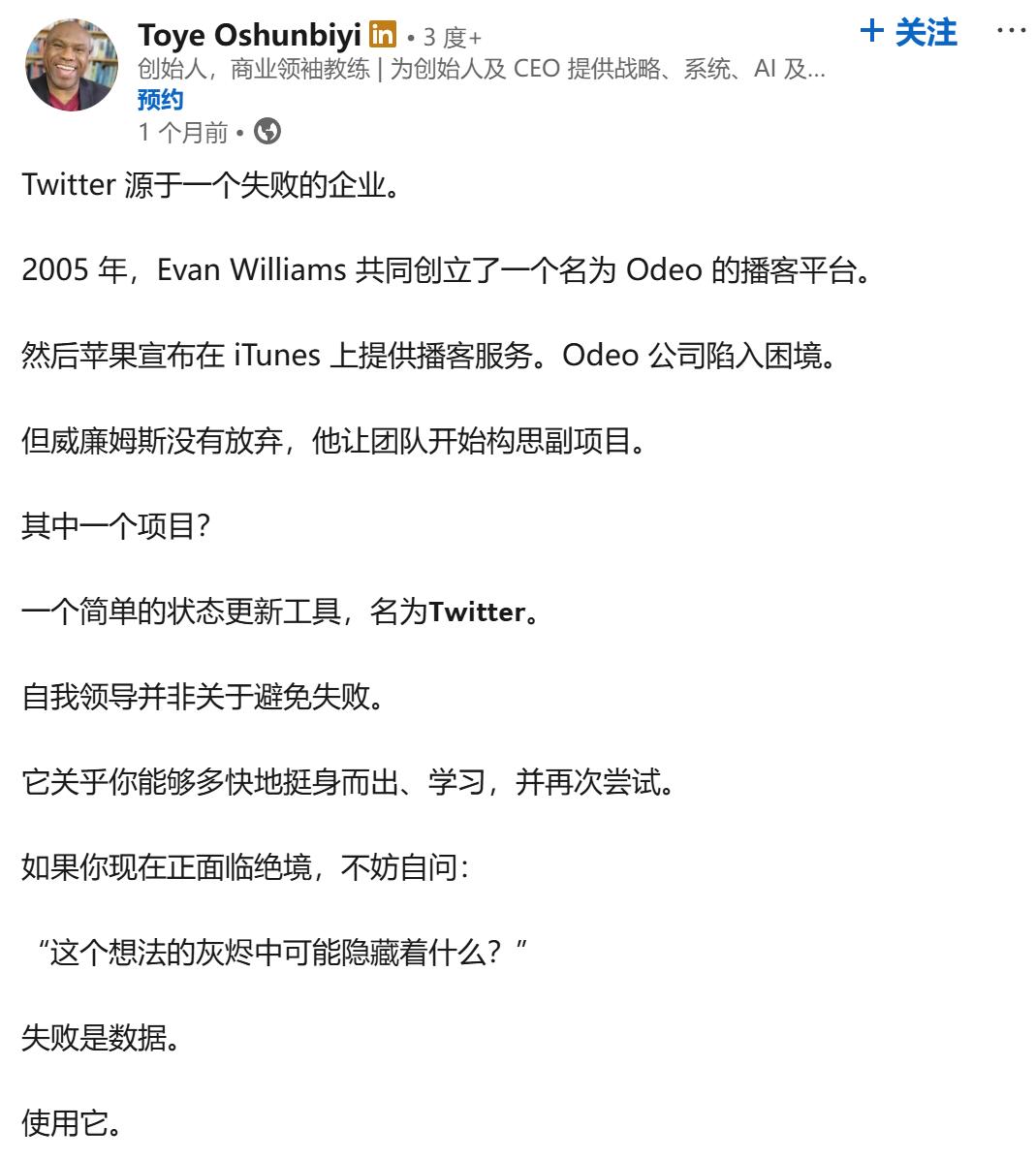 最终,Odeo没救活,但Twitter改变了全球的信息传播方式,改变了数亿人的生活方式。
