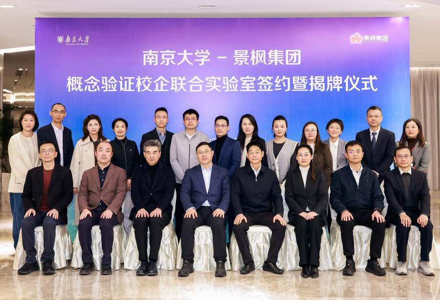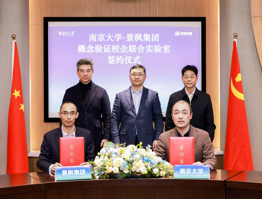 2026年1月25日下午,南京大学与江苏景枫投资控股集团有限公司共建“概念验证校企联合实验室”签约揭牌仪式在景枫中心举行。南京大学党委常委、副校长、中国科学院院士郑海荣,江宁经济技术开发区管委会主任王爱军,江苏景枫投资控股集团有限公司董事长张景春等出席活动。