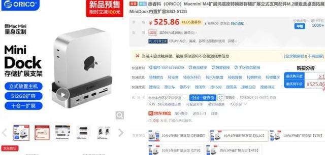 在这样的背景下,存储设备制造商Orico推出的MiniDock外置扩展坞设备便显得格外引人注目。这款专门为新款Apple M4 Mac mini设计,其内置512GB固态硬盘扩容的版本的售价仅约525元,内置2TB固态硬盘扩容版本仅不到1000元。