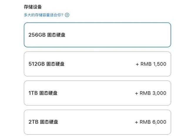 笔者注意到,苹果对于Mac mini存储容量升级的定价策略仍然维持在较高水平:从基础版的256GB升级到512GB需要额外支付1500元,且之后每增加512GB均需支付相同金额。然而,目前市场上同等容量为2TB的固态硬盘售价已降至大约600元。这意味着,苹果的硬盘升级价格几乎是市场售价的近10倍,这一差距着实令人咋舌。
