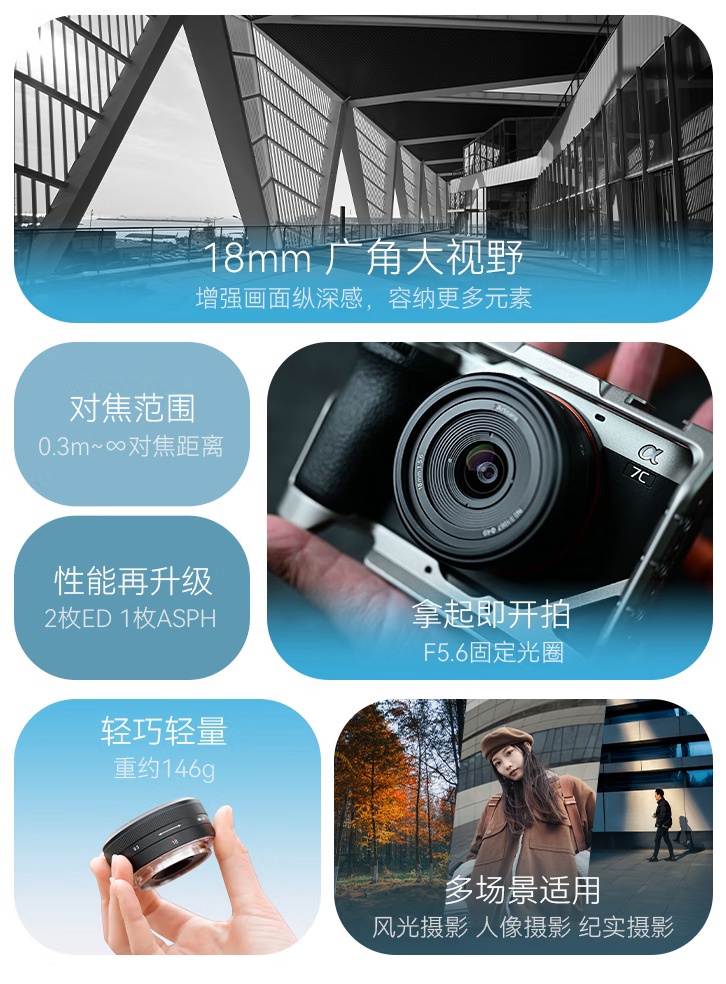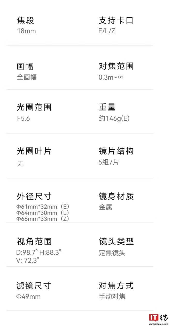 IT之家 12 月 31 日消息,七工匠旗下 18mm F5.6 全画幅饼干镜头现已发售,提供 FE / Z / L 卡口,定价均为 399 元。