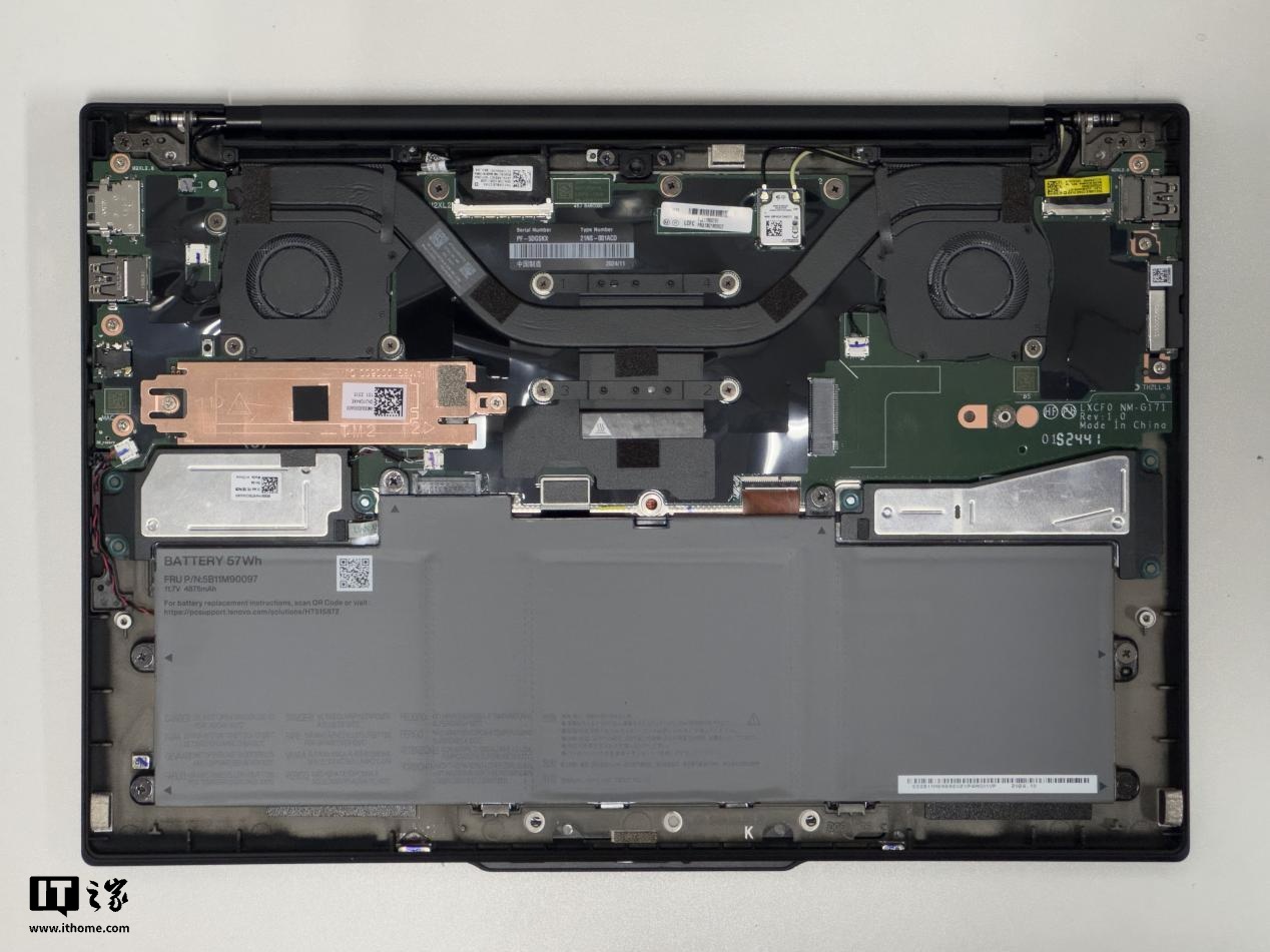 续航表现上,ThinkPad X1 Carbon 2025 Aura 内置 57Wh 电池,笔者认为这个对于一台 14 英寸绝不算大,特别是一台搭载 Ultra 200V 平台的笔记本可以说是偏小了,从之前的拆机图中大家也能看到,在电池周围有着极大的冗余空间,完全可以放下更大的电池。那么这块 57Wh 续航表现如何呢?