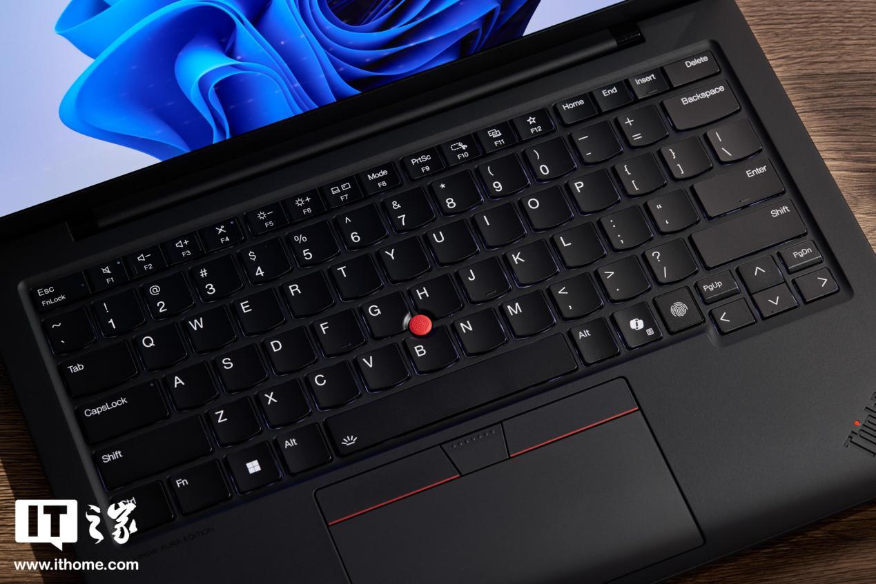 ThinkPad X1 Carbon 2025 Aura 的 C 面同样延续了 X1 系列的经典设计,但也有着些许微调。例如,防泼溅气动键盘 2.0 采用了全新布局,除了 ThinkPad 标志性的 TrackPad 小红帽还新增了全新的快捷功能。在按键触感上,1.5mm 键程配合微笑弧形键帽,输入精准且舒适。另外,ThinkPad X1 Carbon 2025 Aura 支持两档白色可调背光,均匀性较为出色。键盘中还有一枚指纹识别按键可用于 Windows Hello 解锁。