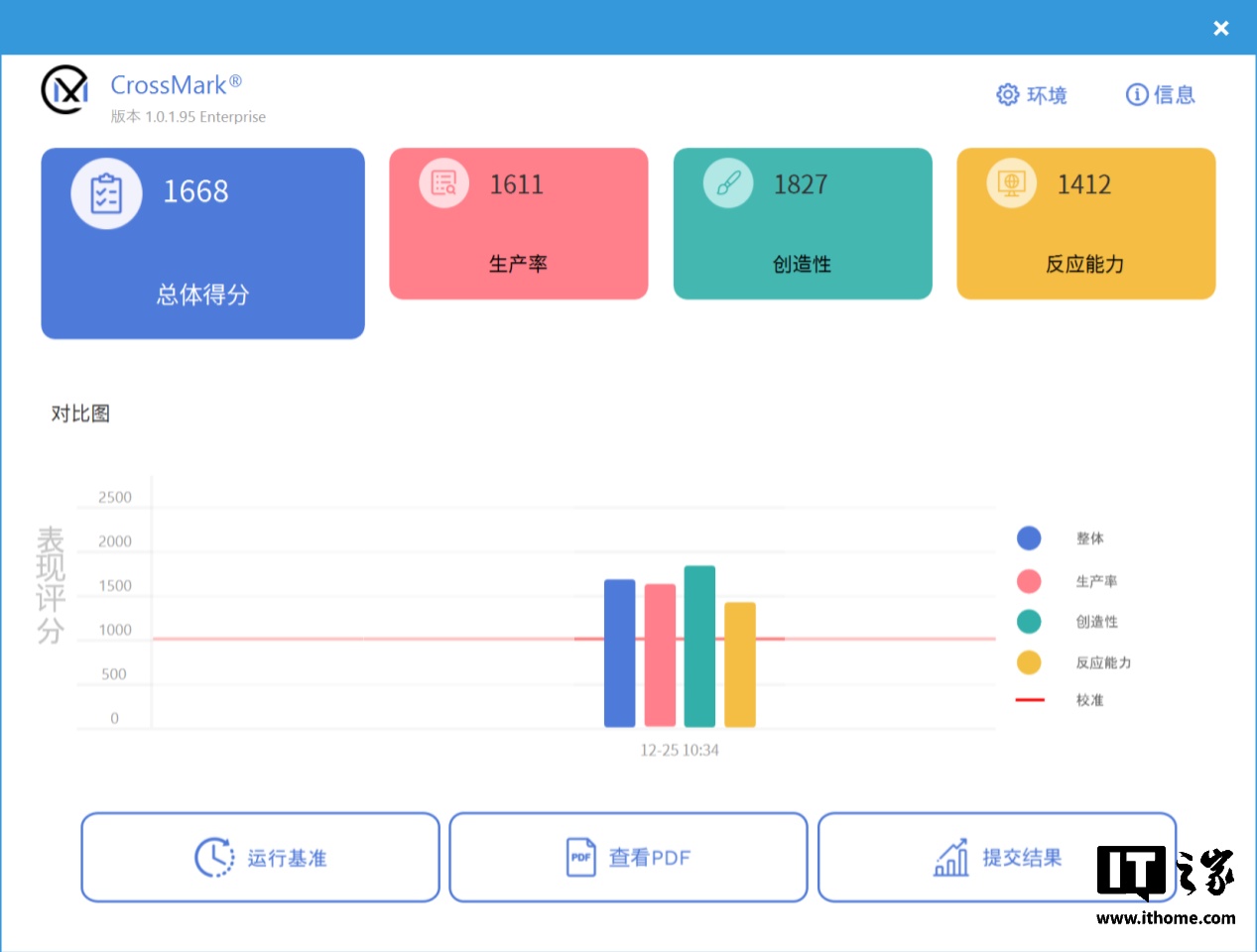 而在生产力的表现上,我们先是测试了 ThinkPad X1 Carbon 2025 Aura 的 CrossMark 成绩。其获得了 1668 的总分,其中创作力得分较为突出,获得了 1827 的分数。