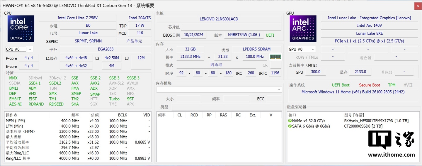 今年 3 月份,联想首发了搭载 Intel 酷睿 Ultra 移动平台的 ThinkPad X1 Carbon Gen12 轻薄本,其续航表现令人惊喜。时隔 9 个月,IT之家收到了 ThinkPad X1 Carbon Gen13,在国内则是称为联想 ThinkPad X1 Carbon 2025 Aura,其处理器升级至 Intel 酷睿 Ultra 7 258V,这款处理器基于台积电 N3B 工艺打造,并且封装了两枚 16GB LPDDR5x 8533MT/s 的高速内存,在续航的表现上能否有新的突破?一起来了解一下吧。