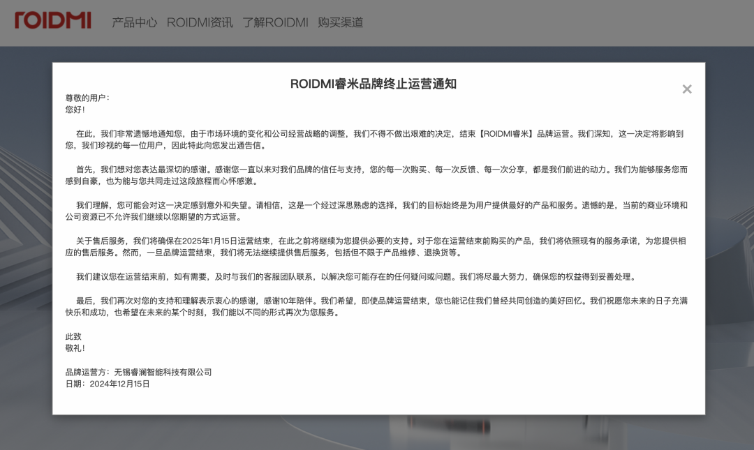 12月15日,主营扫地机器人等清洁类家电的睿米科技,在即将迎来公司成立10周年之际宣布停止运营。2019年时,该公司还获得了由小米科技与顺位资本领投的千万元级别A+轮融资。并且其2022年在众筹平台的发布EVA扫地机器人还获得了超过100万美元的筹款。