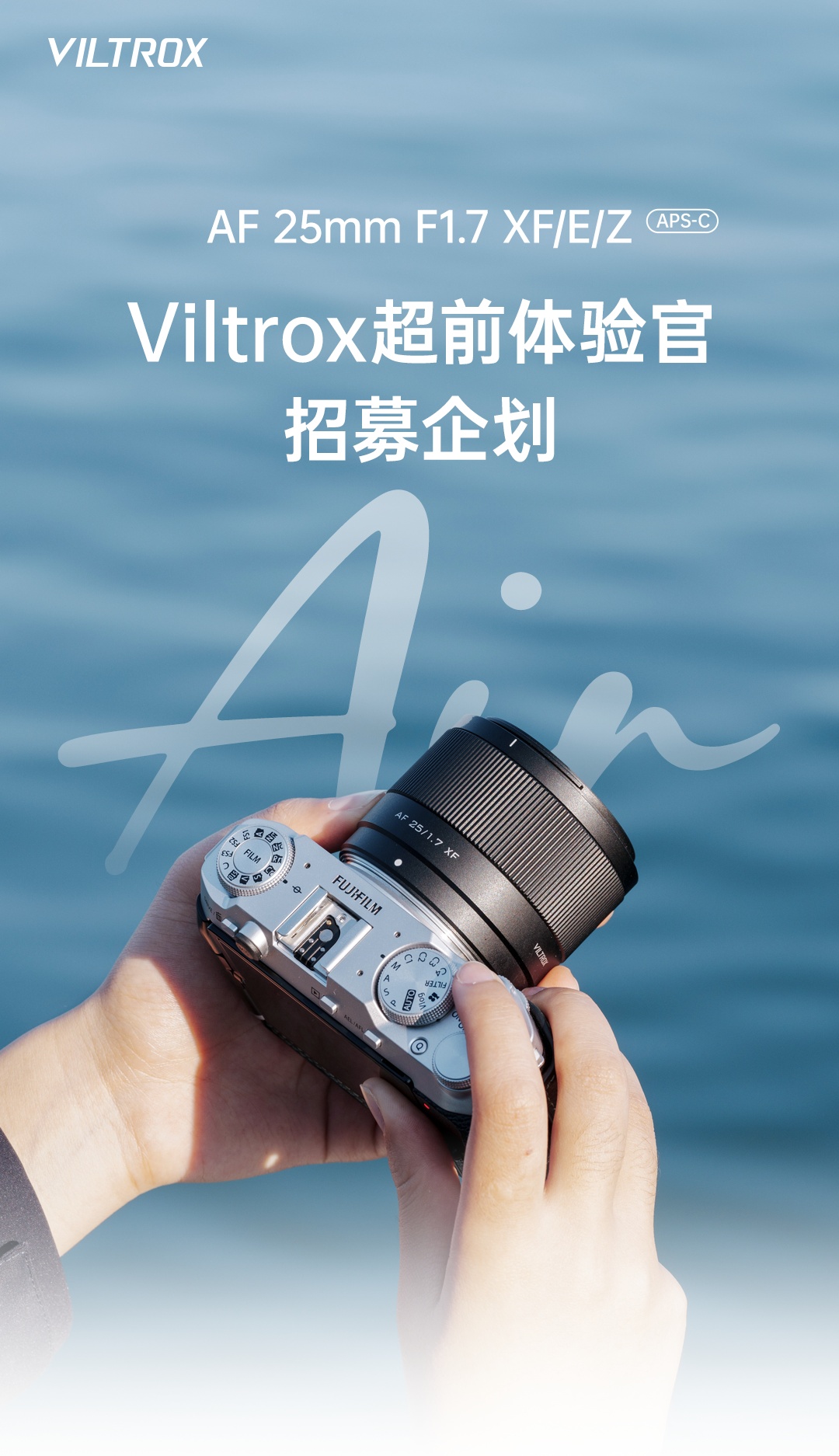 IT之家 12 月 31 日消息,唯卓仕今日预告了一款 AF 25mm F1.7 规格的 APS-C 镜头新品,只确认属于 Air 系列,主打轻便,即日起开始招聘测试人员。