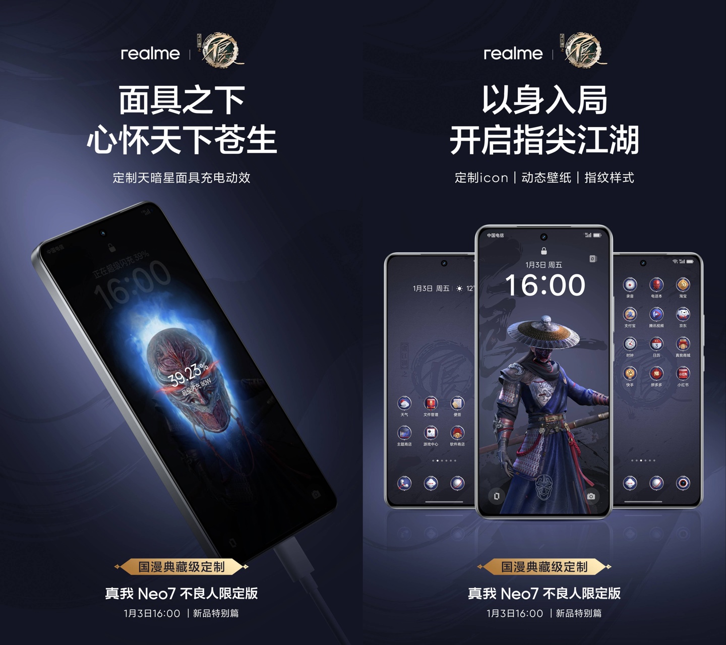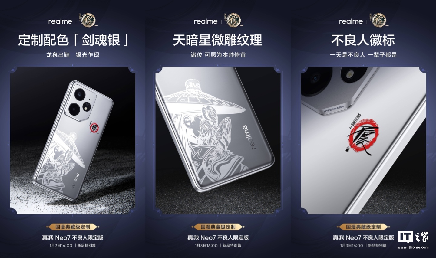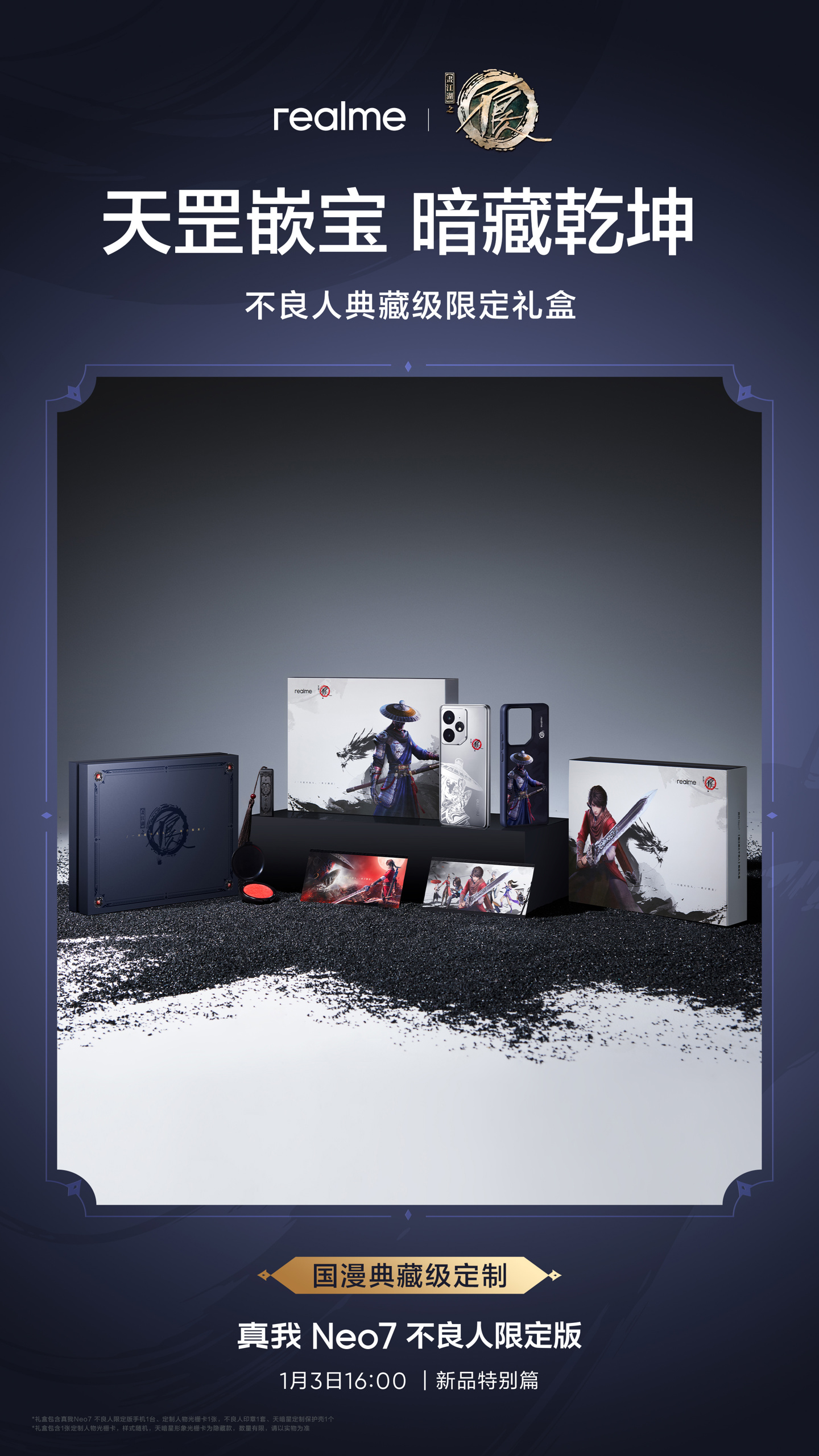 IT之家 12 月 31 日消息,realme 真我 Neo7 手机“不良人限定版”将于 2025 年 1 月 3 日 16:00 发布,官方今日公布了限定版礼盒。