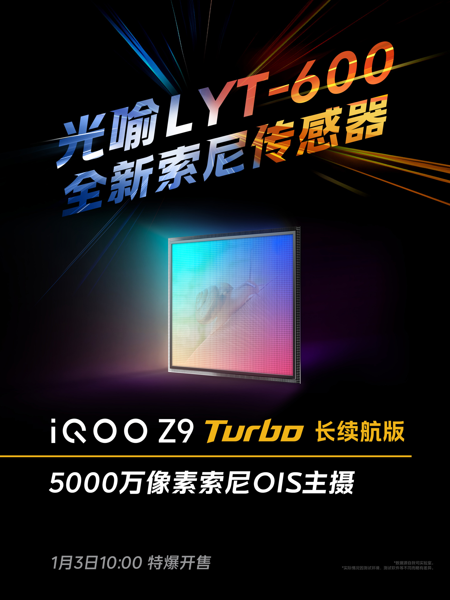 据 iQOO 官方最新预热,Z9 Turbo 长续航版手机配置 5000 万像素索尼 OIS 主摄(光喻 LYT-600),支持动态照片、超级月亮等功能,同时拥有旗舰算法下放的 2x 人像、夜景模式等能力。