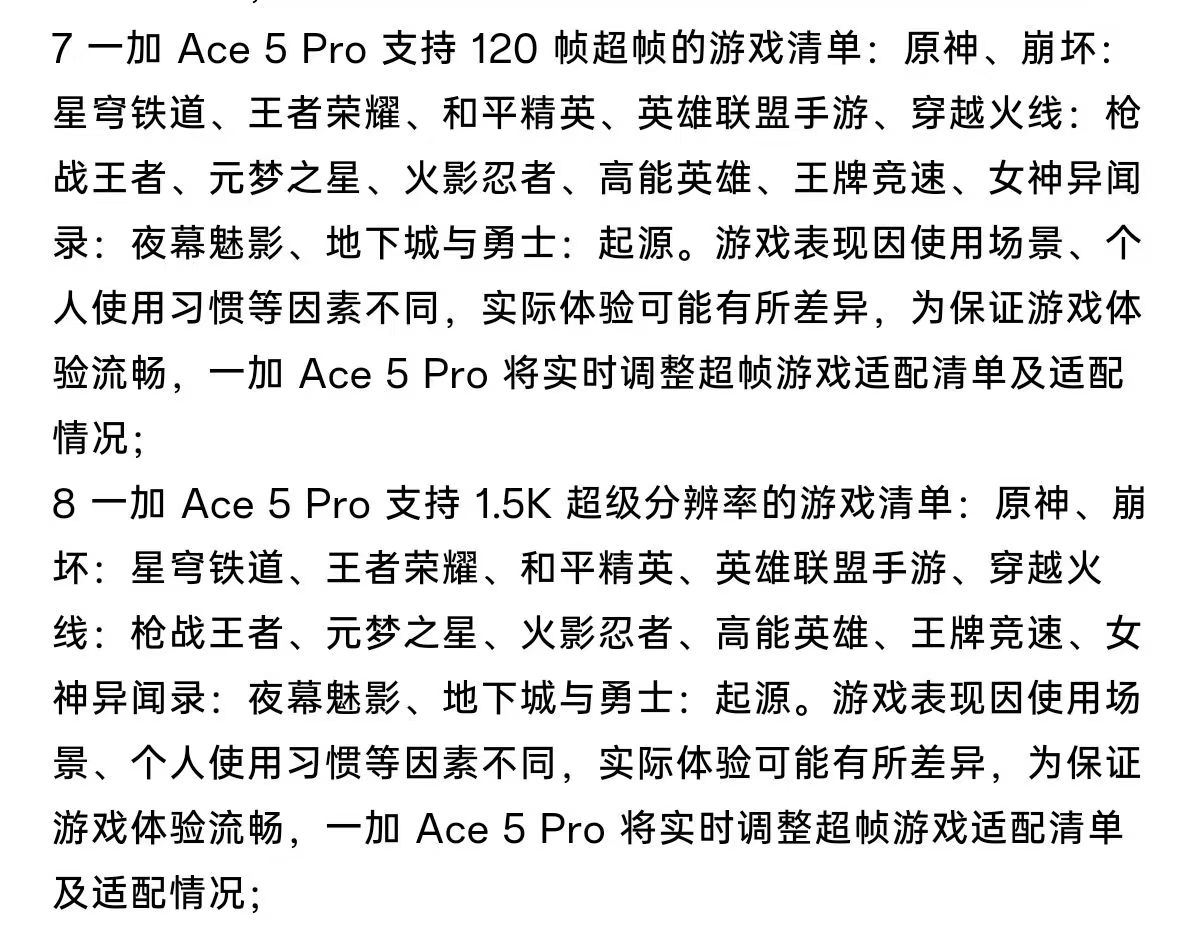 A:因为直到目前为止,各家旗舰芯片的“内插帧”依然高度仰赖着芯片厂商的适配,真我一共就支持两款游戏,一加Ace 5系列也就支持《原神》《崩坏:星穹铁道》《王者荣耀》《和平精英》《英雄联盟手游》《穿越火线:枪战王者》等十来款游戏。
