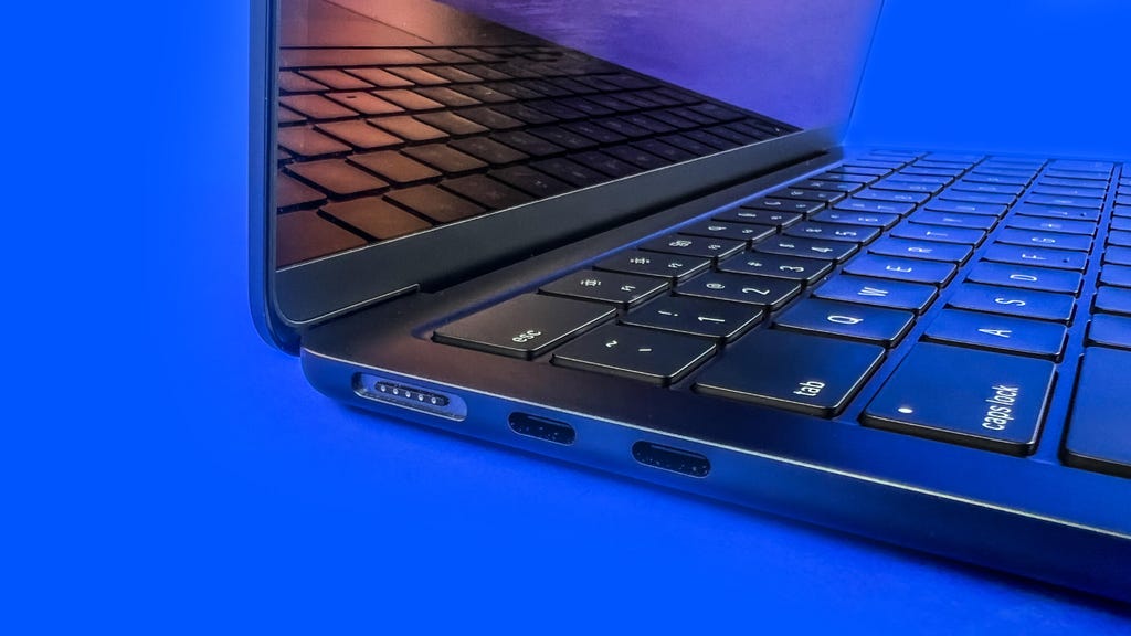 使用MacBook充电似乎很方便,但比任何墙式充电器都要慢。Dan Ackerman/CNET