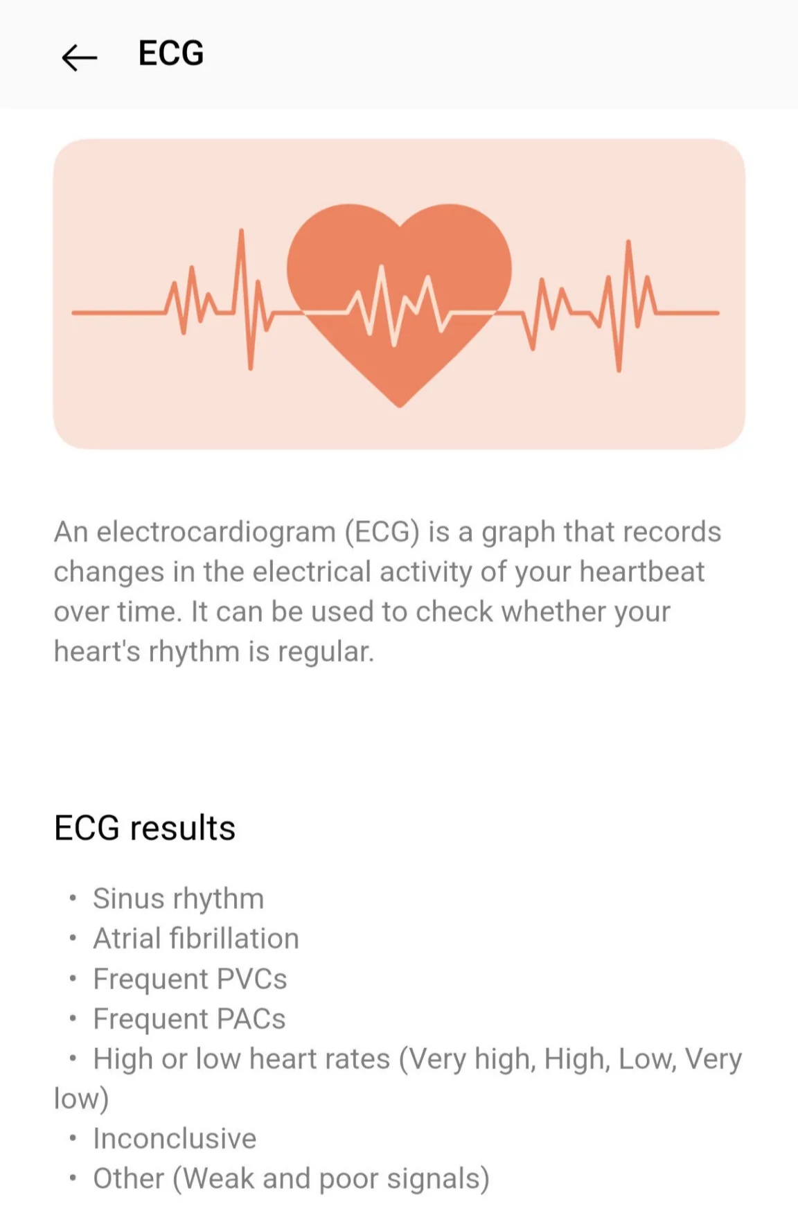 ECG 心电图:监测心脏电活动变化,可用于发现心房颤动等潜在健康问题。