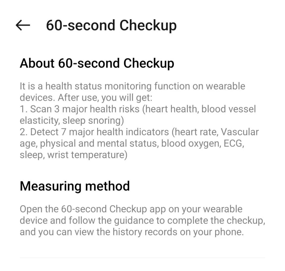 60 秒健康检查:快速测量心脏健康、血管弹性和睡眠打鼾情况,提供关键健康指标概览。