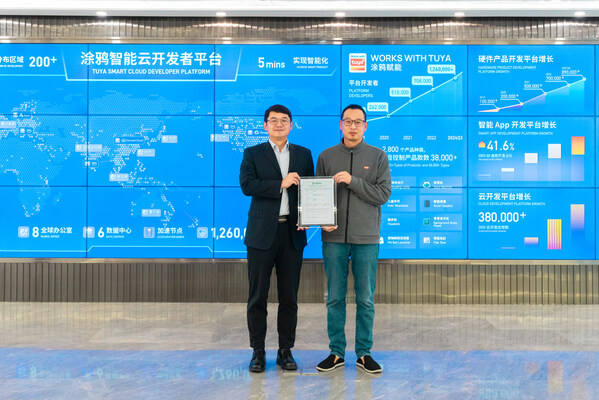 杭州2024年12月31日 /美通社/ -- 12月26日,杭州涂鸦信息技术有限公司(简称涂鸦智能)赋能的首款IPC产品顺利通过DEKRA德凯网络安全评估,并荣获RED DA网络安全证书。颁证仪式在涂鸦智能杭州公司举行。涂鸦智能质量保障负责人林祖住、DEKRA德凯中国网络安全总经理罗黎共同出席了本次颁证仪式。