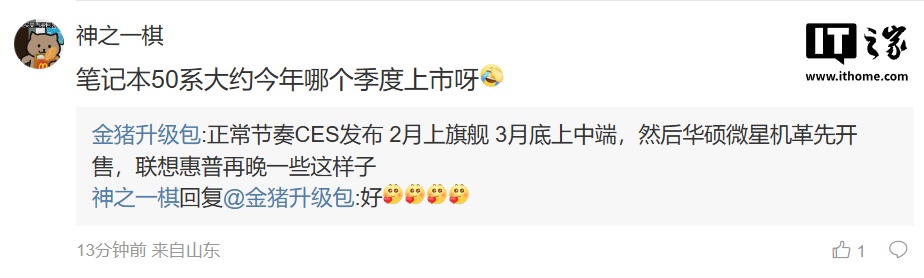 至于发布时间,该博主称“正常节奏 CES 发布 2 月上旗舰 3 月底上中端,然后华硕微星机革先开售,联想惠普再晚一些这样子”。