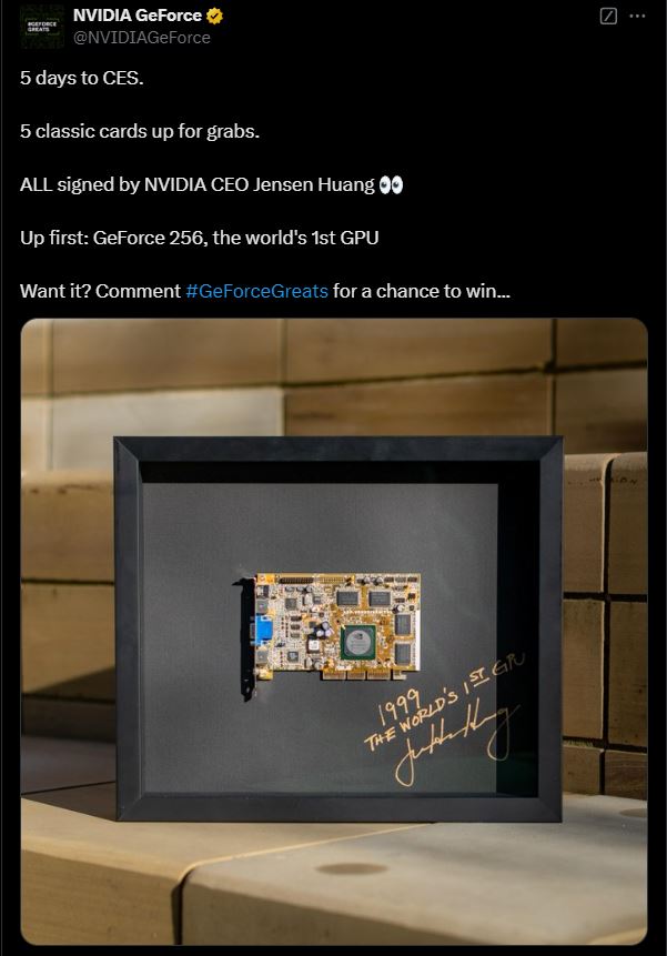 要想赢得 GeForce 256 显卡,用户必须在英伟达 X 上的 #GeForceGreats 帖子中发表评论,用户需要在评论中分享他们的"核心"游戏记忆,这将使他们有资格赢得一些极好的东西,包括两块 GPU、标志性游戏的珍藏版以及一些独家物品。