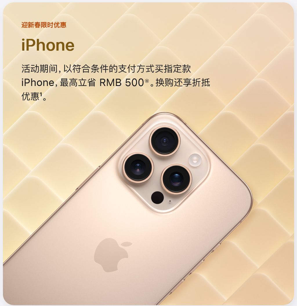 IT之家此前报道,苹果公司官网于 1 月 2 日推出“叱咤福利”新年促销活动,iPhone 16 系列直降 500 元,AirPods、Mac、iPad 以及其他配件也都有不同程度的优惠。