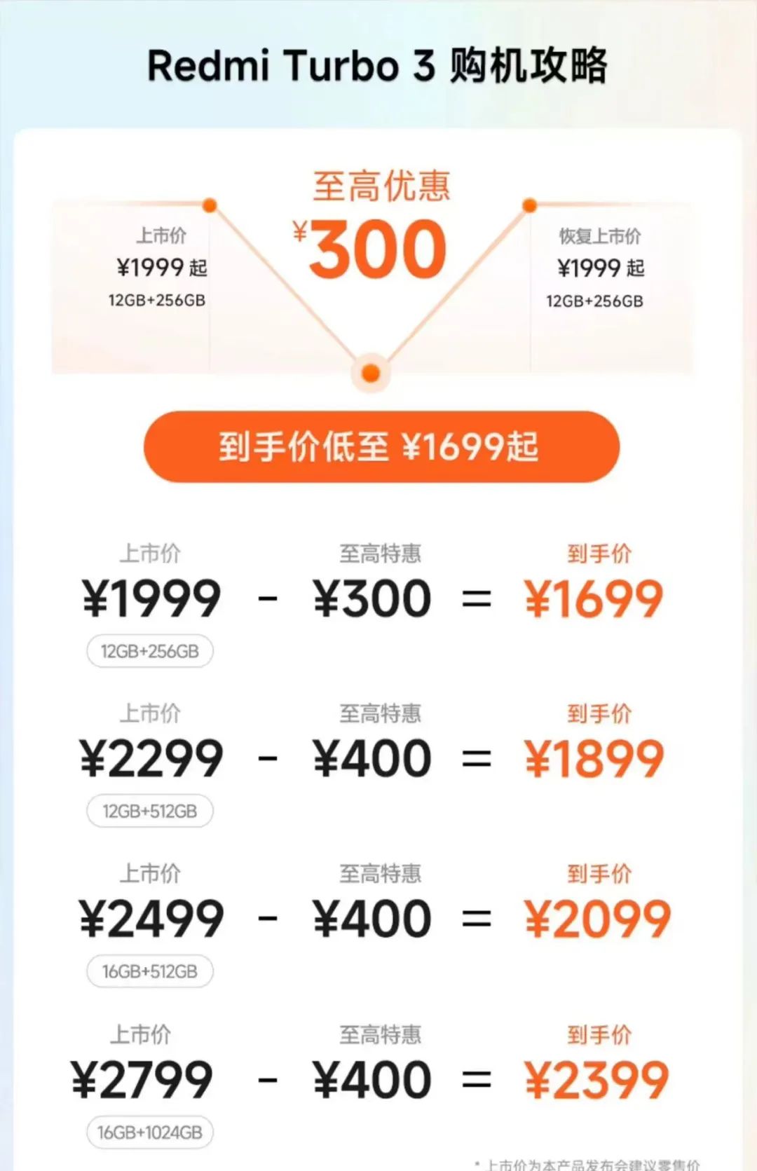 这不老款的“红米 Turbo 3”也开始了促销大甩卖,最高优惠 400 元。