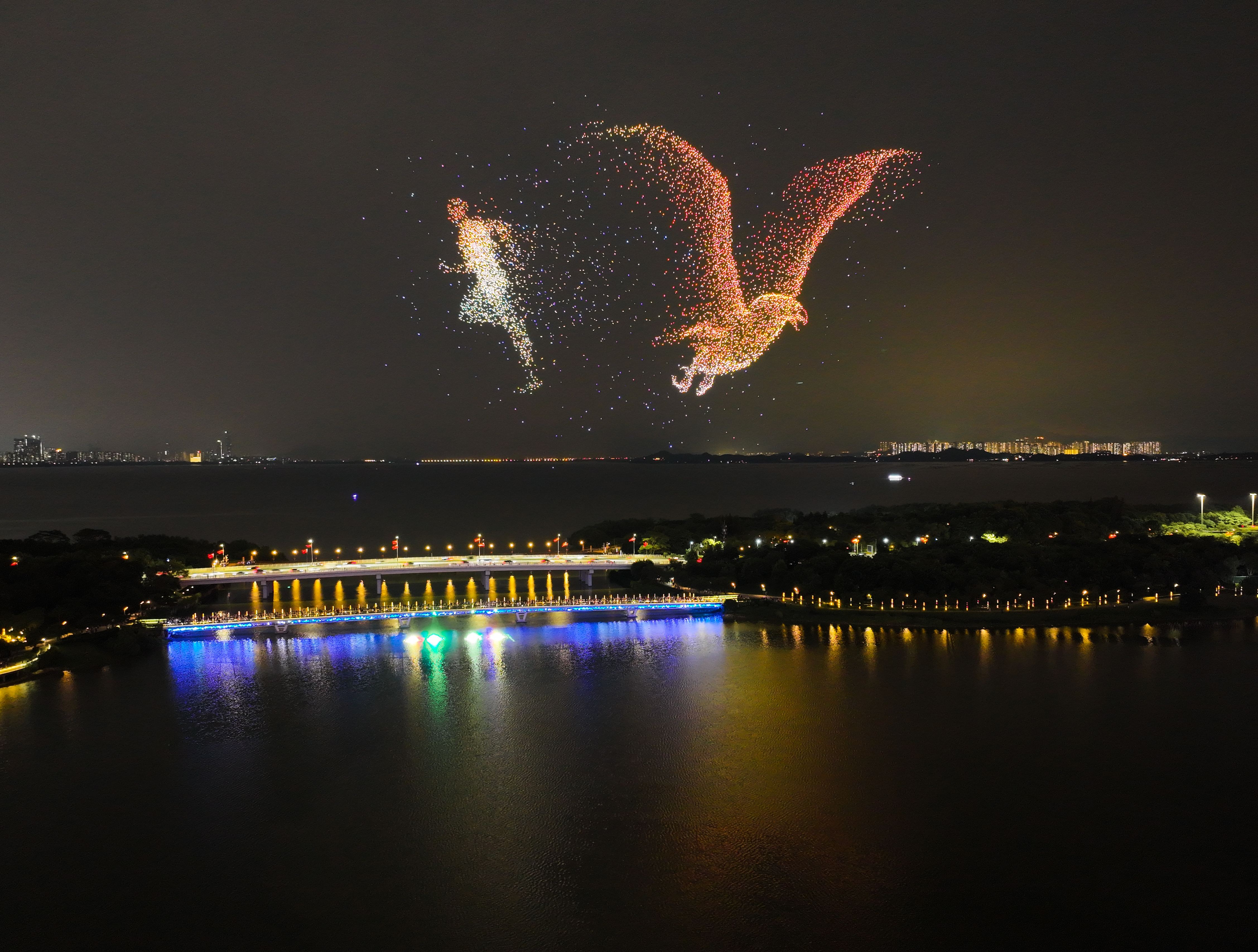 无人机集群在空中组成大鹏展翅”图案(图源/官方)