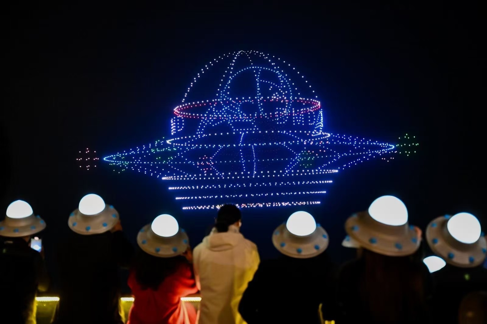 无人机集群在空中组成大漠大号“DMD飞船”图案(图源/官方)