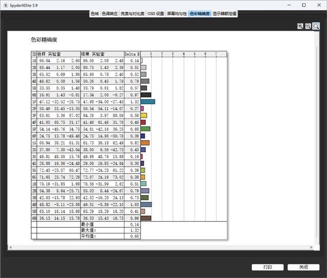 色彩精度方面也是非常亮眼,最大Delta-E仅为1.32,平均Delta-E仅有0.60,这个成绩甚至能超过很多专业的设计用笔记本的屏幕,素质非常惊人。