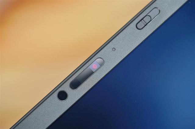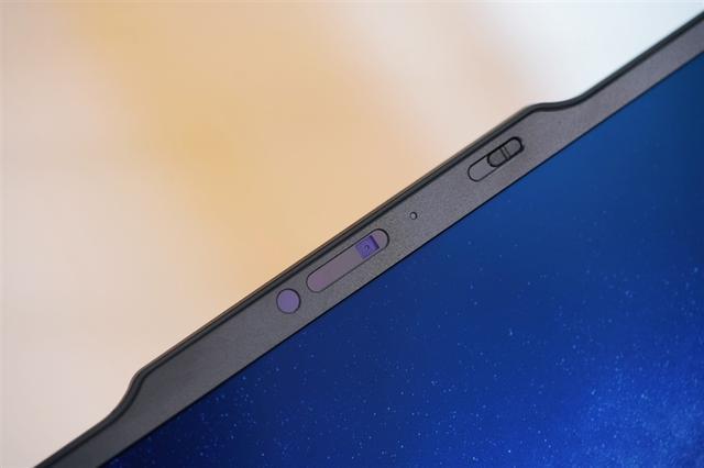 屏幕上方凸起的区域内,设置了摄像头和用于Windows Hello解锁的红外摄像头,保护隐私的摄像头工作指示灯和摄像头物理开关也都没有缺席。