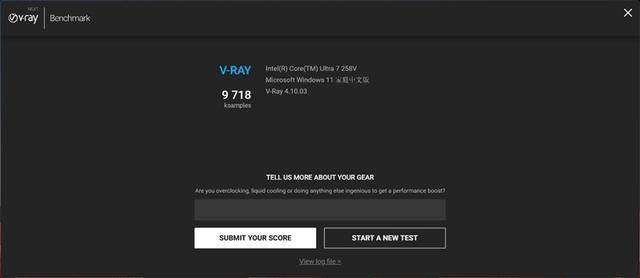 Intel酷睿Ultra 7 258V处理器在V-Ray的CPU测试中的成绩为9718。