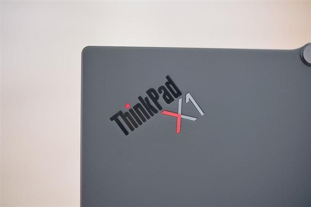 联想ThinkPad X1 Carbon Aura AI 2025笔记本标志性的碳纤维材质涉及,顶盖左上角上有非常明显的ThinkPad X1标识。作为ThinkPad最具代表性的特征,这个标志上的小红点还可以点亮。