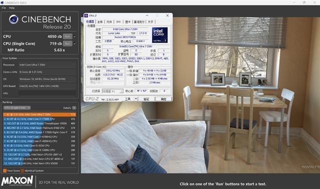 酷睿Ultra 7 258V在CINEBENCH R20测试中,单线程成绩为719,多线程为4050。