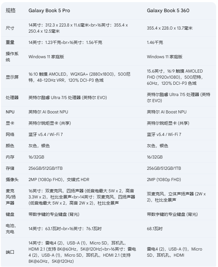 IT之家 1 月 7 日消息,在 CES 2025 上,三星正式发布了新款 Galaxy Book5 系列笔记本电脑,包括 Galaxy Book5 Pro 和 Galaxy Book5 360 两款产品。这两款新品均搭载了英特尔最新发布的、配备 NPU(神经网络处理器)的 Arrow Lake 酷睿 Ultra 处理器,并深度集成了 Galaxy AI 功能。