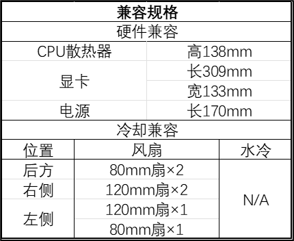 该机箱宽深高 440×362×170mm,体积 27.8L,支持 SSI-CEB、ATX 及以下尺寸主板,拥有 7+1 条 PCIe 扩展槽,内部还有另一个 2.5 英寸硬盘位,具体硬件兼容规格如下: