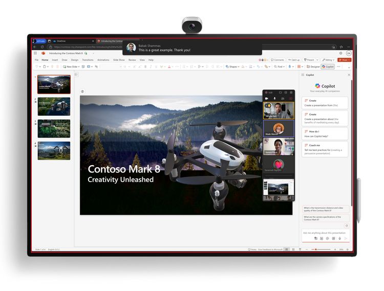 为了满足员工在不同办公地点快速便捷地共享内容的需求,微软正在为 Hub 3 引入多种内容共享方式,包括 Edge 浏览器访问和对桌面控制台的支持(未来将支持通过线缆从个人电脑共享内容)。