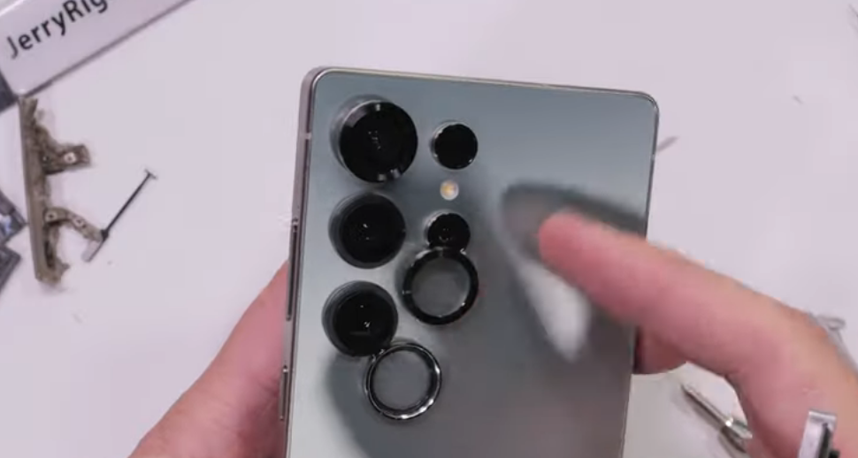 YouTuber JerryRigEverything 今日发布了对三星 Galaxy S25 Ultra 的耐久性测试,新机的后置摄像头突出于机身背部,预计是出于保护目的,三星在几个镜头外部加了金属环。