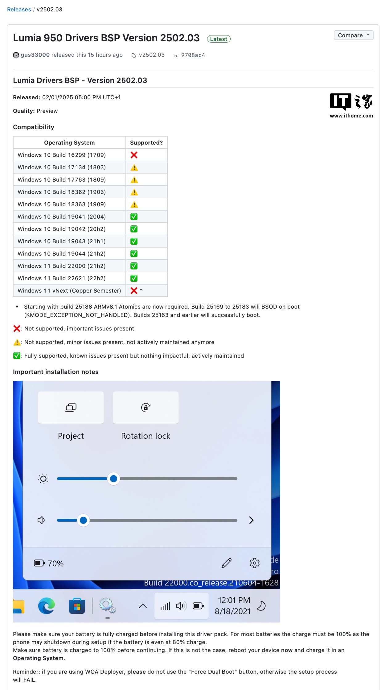 IT之家附具体兼容系统版本号如下: