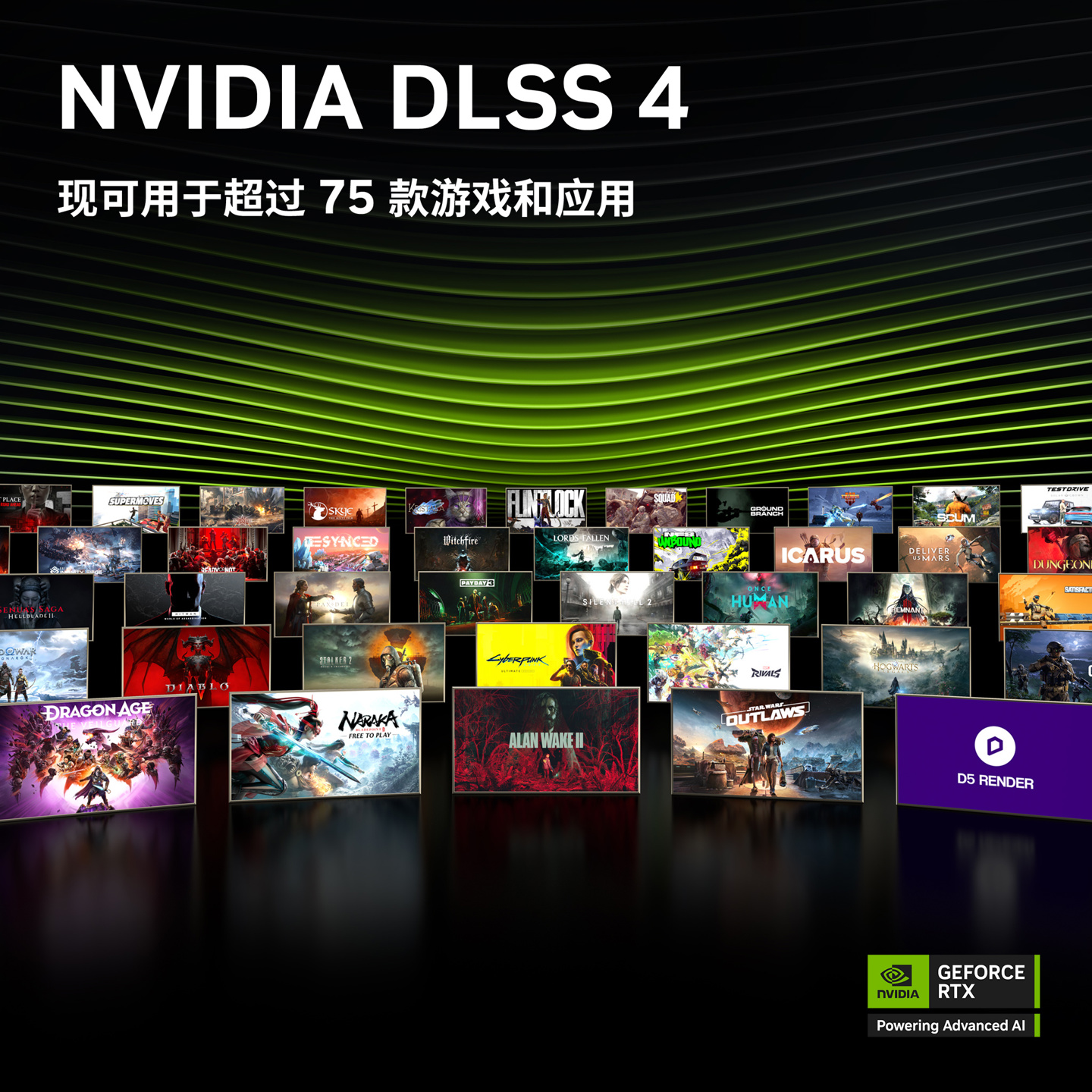 英伟达表示,带有多帧生成功能的 DLSS 4 现可用于超过 75 款游戏和应用,还有许多游戏和应用支持 DLSS 帧生成、超分辨率、光线重建和 DLAA 的全新增强功能。