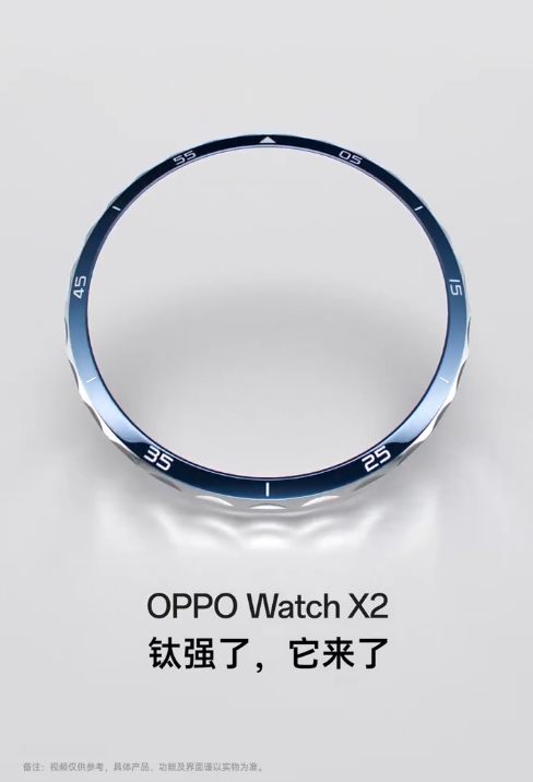 IT之家 2 月 6 日消息,OPPO 今日官宣了 OPPO Watch X2 智能手表,新品将搭载全新钛金属表圈,采用“航空级材质”。该手表即将与 OPPO Find N5 一起登场。