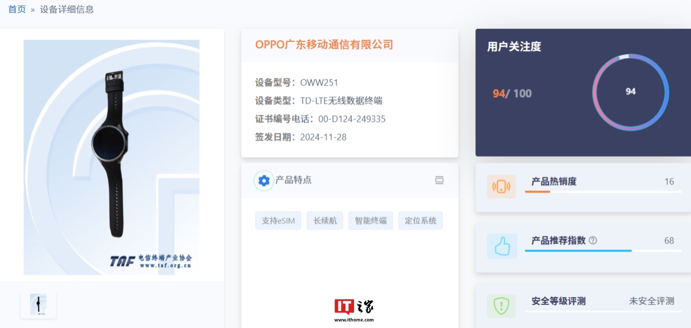 据IT之家此前报道汇总,一款型号为“OWW251”的 TD-LTE 无线数据终端入网图于今年 1 月公布,入网信息显示,这款新品支持独立 eUICC 芯片的 eSIM,eSIM 支持的电信运营商为中国联通和中国移动,电池额定容量为 631mAh。