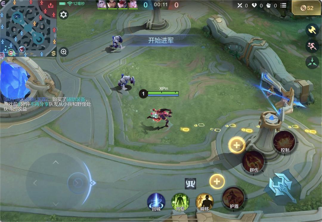 地图由三条路组成,位置划分也是上单打野中单下路双人组那一套,防御塔的布局也和王者一毛一样,水晶位置也没有门牙塔,买装备也不用回家。。。