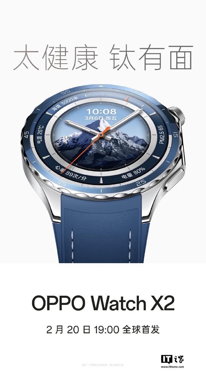 IT之家 2 月 10 日消息,OPPO Find N5 折叠旗舰及 OPPO Watch X2 智能手表新品发布会将于 2 月 20 日 19:00 举行,官方刚刚公布了后者的渲染图。